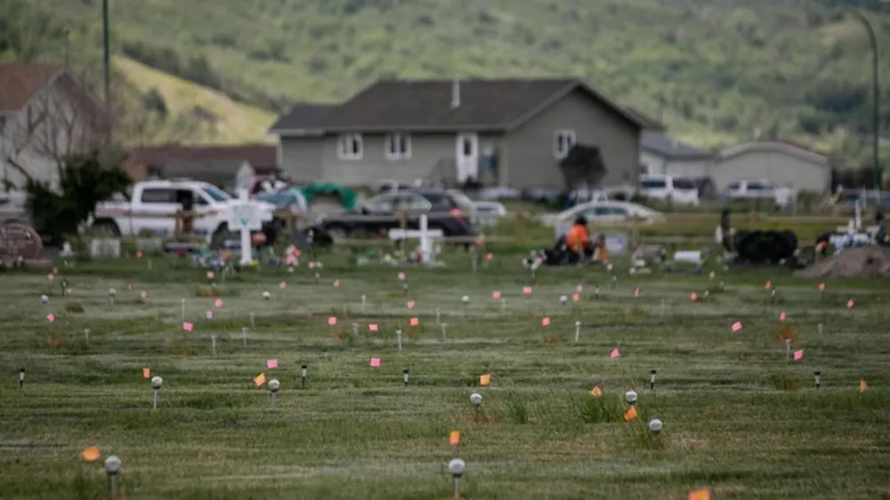Saskatchewan eyaletindeki Marieval Yatılı Kilise Okulunun bahçesinde 24 Haziran 2021'de resmi kayıtlarda bulunmayan 751 çocuk cesedi kalıntısının olduğu mezarlar ortaya çıkarılmıştı.