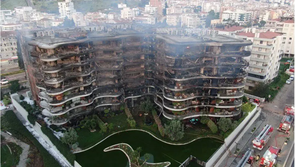 İzmir'in Narlıdere ilçesindeki lüks bir sitede çıkan, ekiplerin karadan ve havadan müdahalesiyle 8 saatte kontrol altına alınan yangındaki hasar, gün ağarınca ortaya çıktı. Soğutma çalışmaları sürerken, bloktaki dairelerin kullanılamaz hale geldiği görüldü.