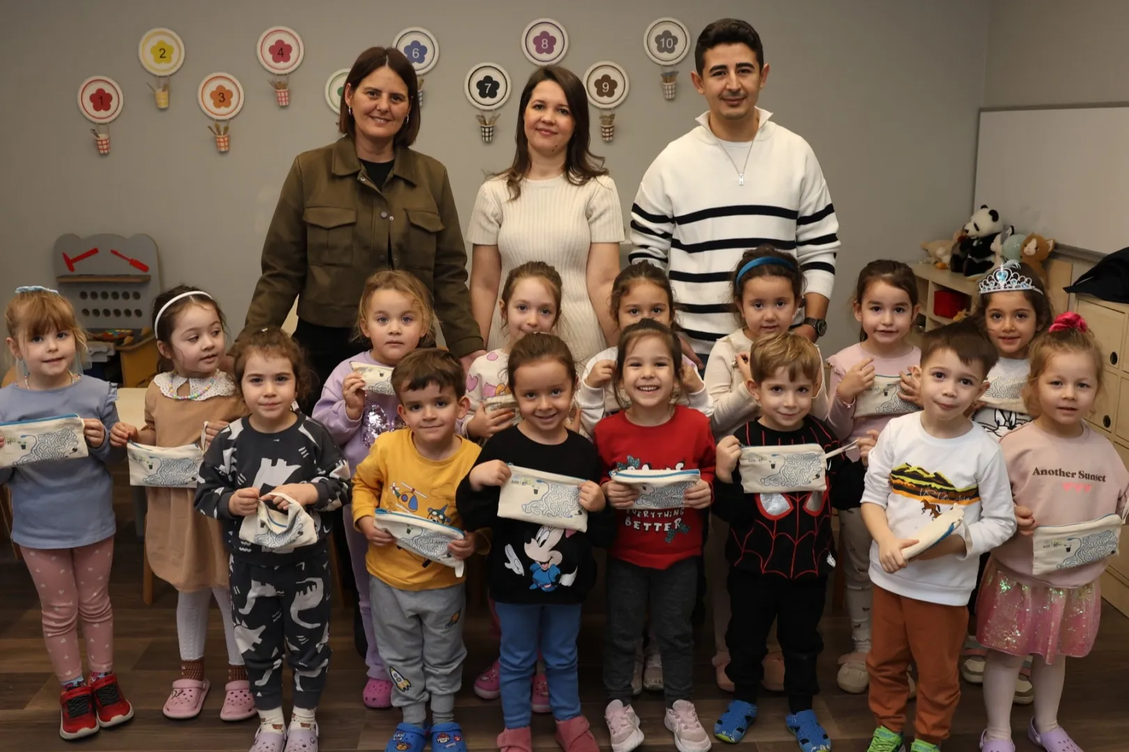 Öğrenme sürecini çocuklar için daha keyifli hale getirmek amacıyla konuyla ilgili boyama etkinlikleri düzenlenirken, tüm miniklere günün anısı olarak kalem kutusu hediye ediliyor.