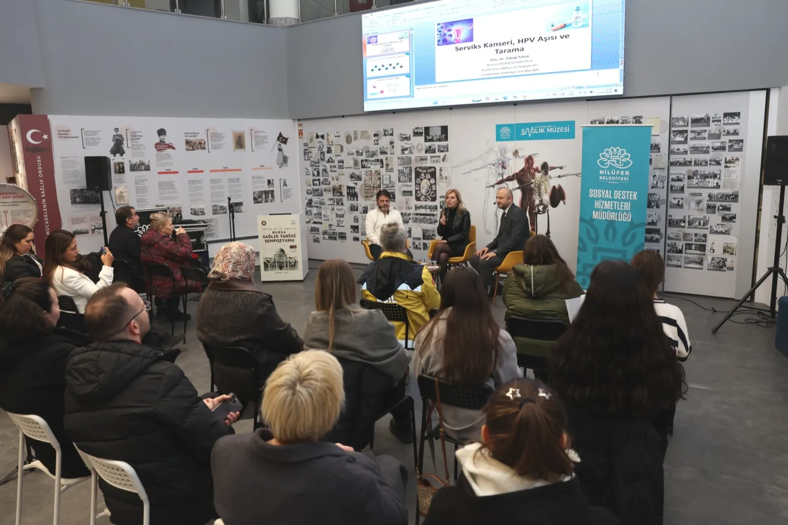 Bursa Nilüfer Belediyesi'nin 'Sağlık Buluşmaları'nda, kadın kanserleri arasında önlenebilir olmasıyla öne çıkan rahim ağzı kanseri, HPV aşısı ve tarama yöntemleri masaya yatırıldı. Söyleşide, HPV taramasının kritik rolüne dikkat çekilirken, aşının yüksek koruyuculuğunun altı çizildi.