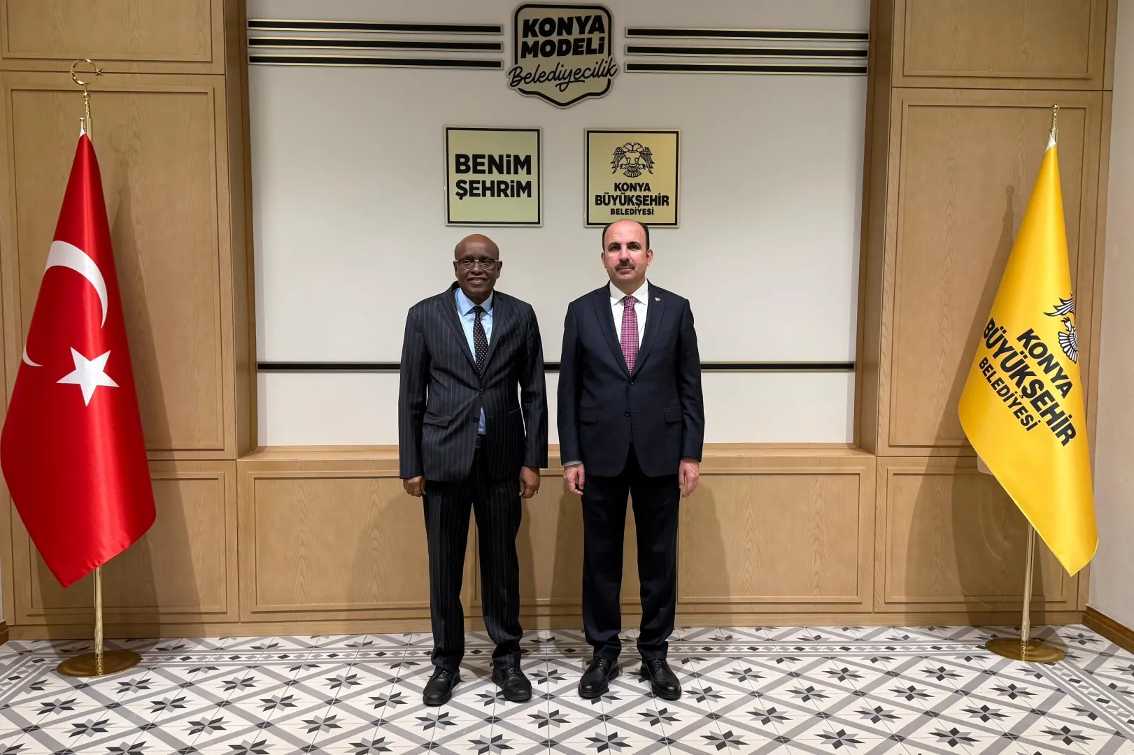 Cibuti Cumhuriyeti Ankara Büyükelçisi Aden Houssein Abdillahi, Konya Büyükşehir Belediye Başkanı Uğur İbrahim Altay’ı makamında ziyaret etti. Ziyaret, Konya Büyükşehir Belediyesi’nin tarihi Taş Bina’sında gerçekleşti.
