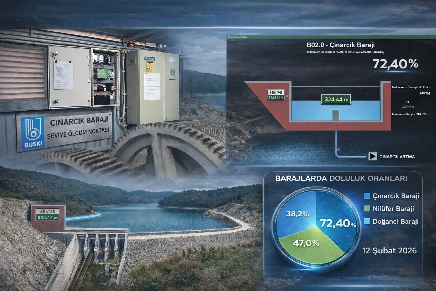 Arızalara veya sıkıntılı noktalara merkezden anında müdahale edilebilmesini sağlayan sistemle, Çınarcık Barajı’nın su seviye bilgisi ve doluluk oranı artık anlık olarak takip edilebiliyor.