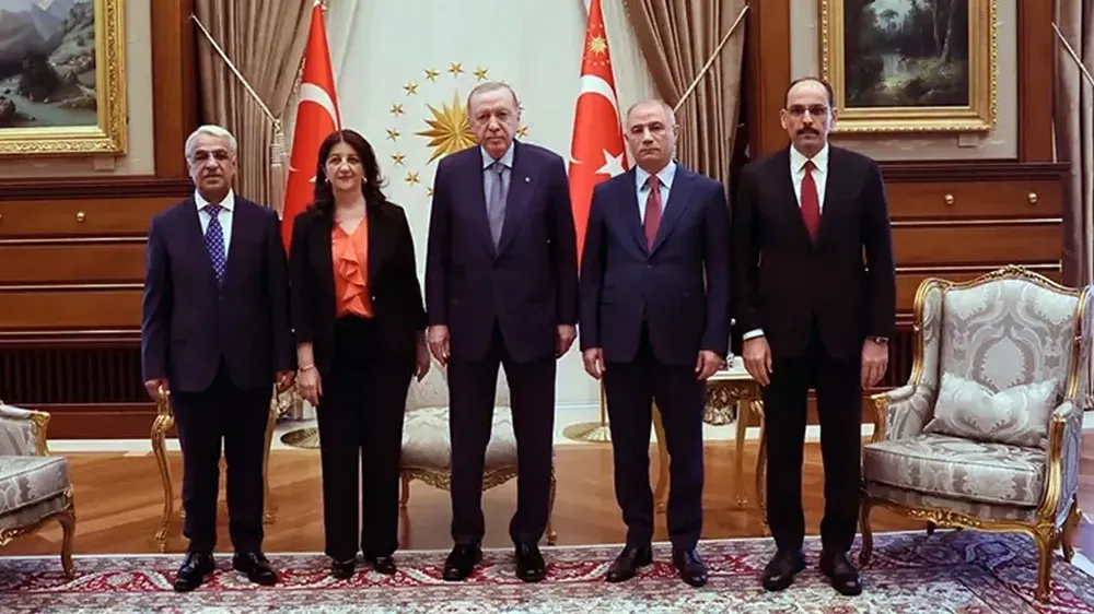 MHP Genel Başkanı Devlet Bahçeli'nin PKK lideri Abdullah Öcalan’a yönelik çağrısının ardından başlayan süreçte, örgütün önümüzdeki günlerde silah bırakması bekleniyor. Süreç kapsamında dün önemli bir görüşme gerçekleşti. DEM Parti İmralı Heyeti'nde yer alan Pervin Buldan ve Mithat Sancar, Beştepe'de bulunan Cumhurbaşkanlığı Külliyesi'nde Cumhurbaşkanı ve AKP Genel Başkanı Recep Tayyip Erdoğan ile görüştü. AKP Genel Başkanvekili Efkan Ala ile MİT Başkanı İbrahim Kalın'ın da katıldığı görüşme yaklaşık 1 saat sürdü.