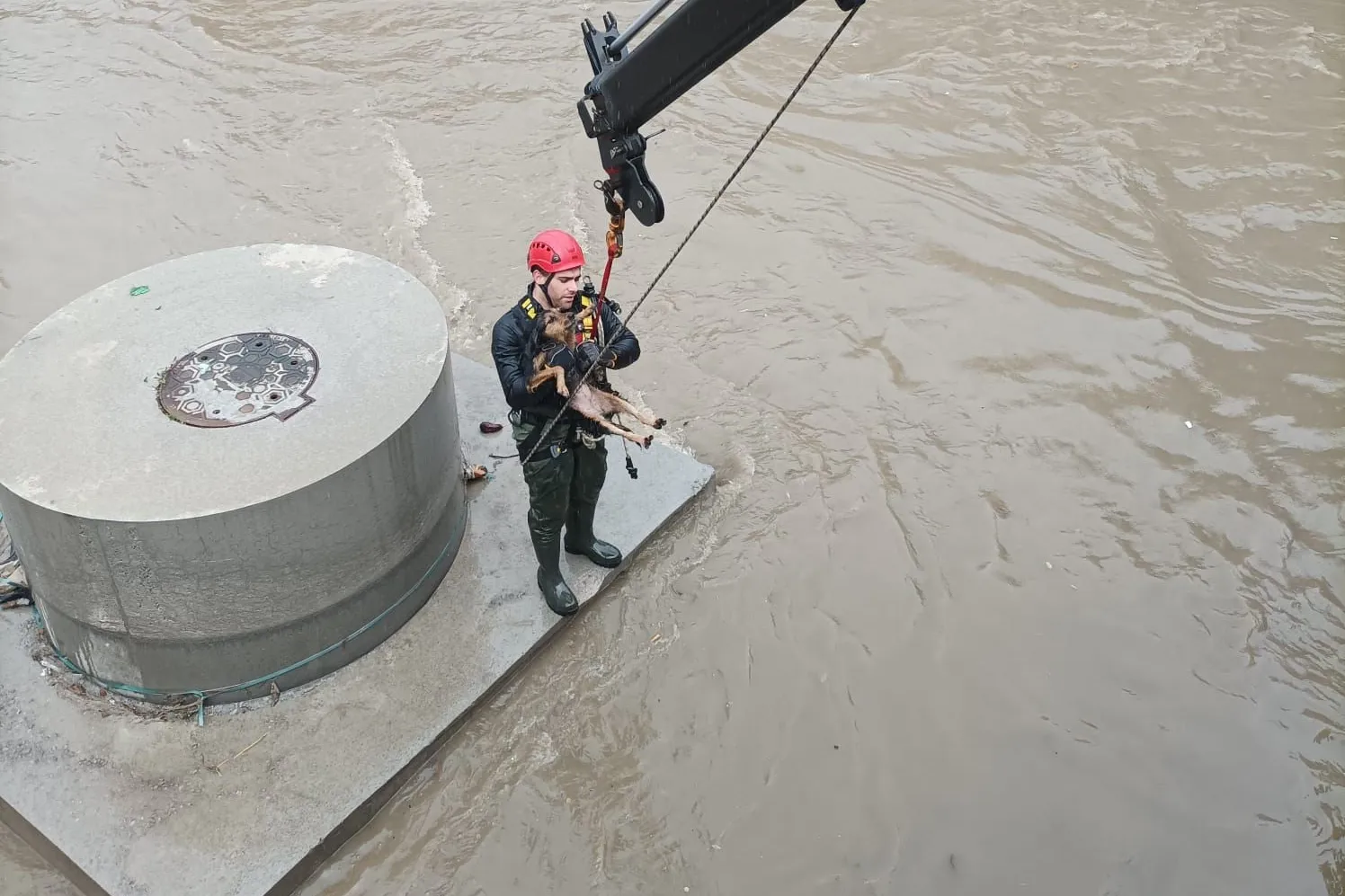 İzmir'in Karabağlar ilçesi Aşık Veysel Mahallesi’nde dere yatağına düşen bir köpeğin fark edilmesi üzerine çevre sakinleri durumu hemen 112 Acil Çağrı Merkezi’ne bildirdi. Yağışlı hava koşulları, su seviyesinin yükselmesine neden olmuş ve köpeğin durumunu kritik hale getirmişti.