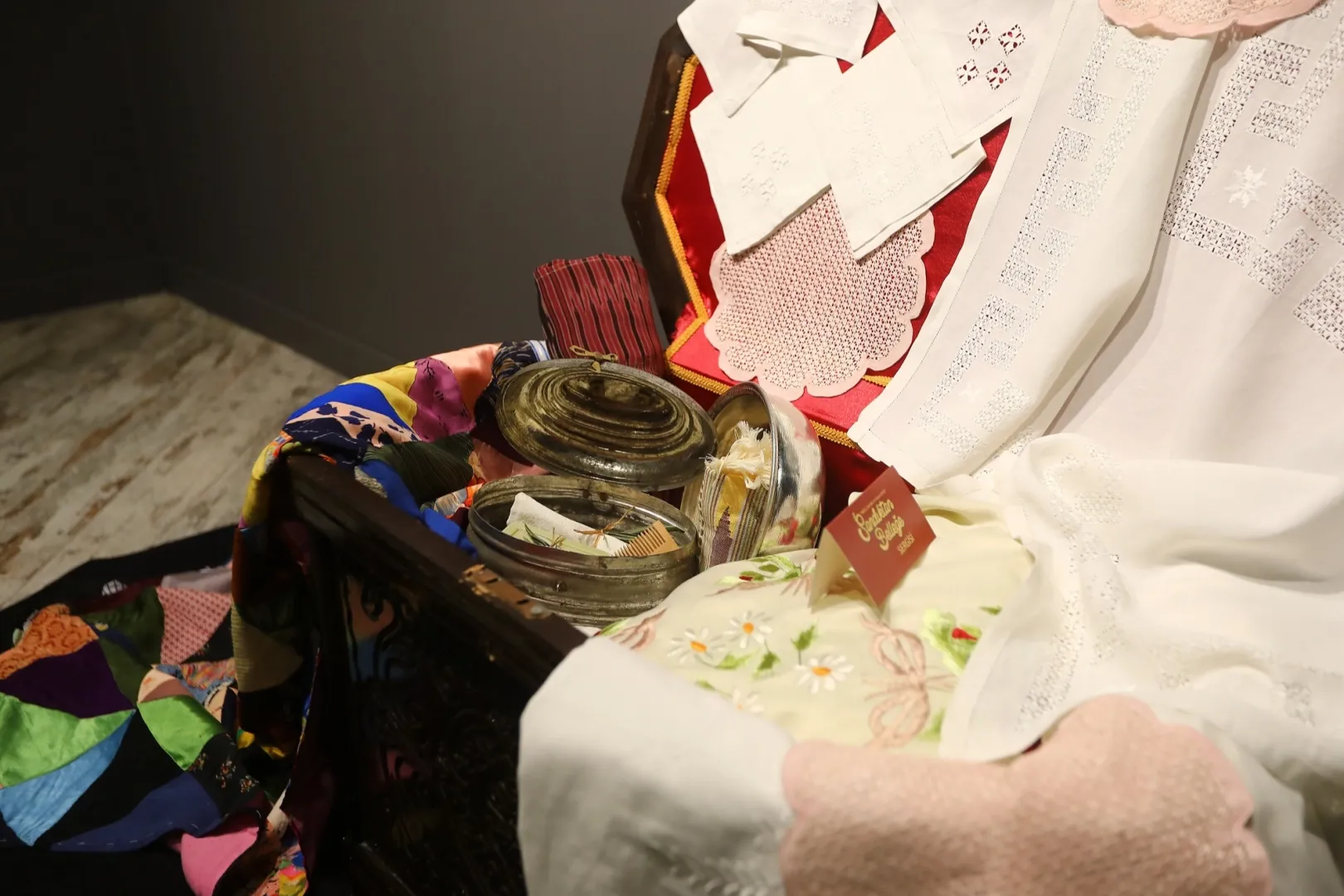 Gaziantep Büyükşehir Belediyesi'nin kültürel mirası koruma çalışmaları kapsamında hazırlanan “Sandıktan Belleğe: Meral Dai’nin 70 Yıllık Çeyizi” sergisi, Kahraman Emmioğlu Kültür ve Sanat Merkezi’nde ziyaretçilerle buluştu. Sergi, 17 Şubat tarihine kadar gezilebilecek.