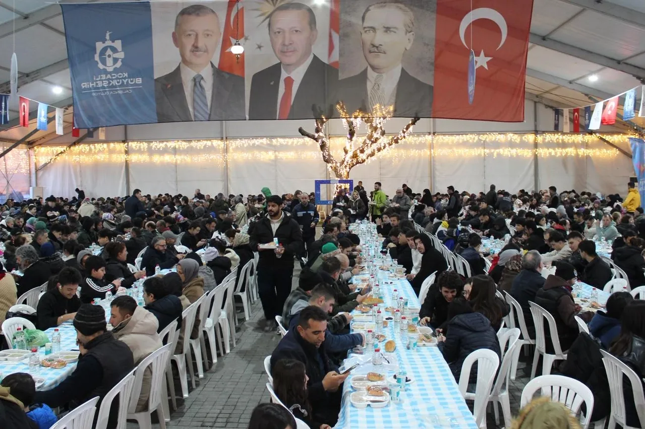 Kocaeli Büyükşehir Belediyesi, geleneksel hale getirdiği iftar sofralarıyla vatandaşları bir araya getirmeyi sürdürüyor. Ramazan ayı boyunca devam eden iftar programlarının Gebze ayağında bir araya gelen vatandaşlar, aynı sofrada oruç açmanın huzurunu yaşıyor. Günün telaşı içinde iftara yetişemeyenler de Ramazan çadırındaki bereketli sofralara konuk oluyor. Büyükşehir Belediyesi'nin organizasyonuyla her gün en az 1.500 kişilik iftar verilirken, meydanda kardeşlik ve paylaşma görüntüleri yüzlerde tebessüm bırakıyor.
