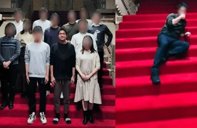 Haberin görsellerinde, Kişida'nın, konutta ağırladığı akrabaları ve yabancı misafirleriyle eğlendikleri anlar ile bir kişinin kırmızı halı kaplı merdivende yatarken verdiği poz görülüyor.