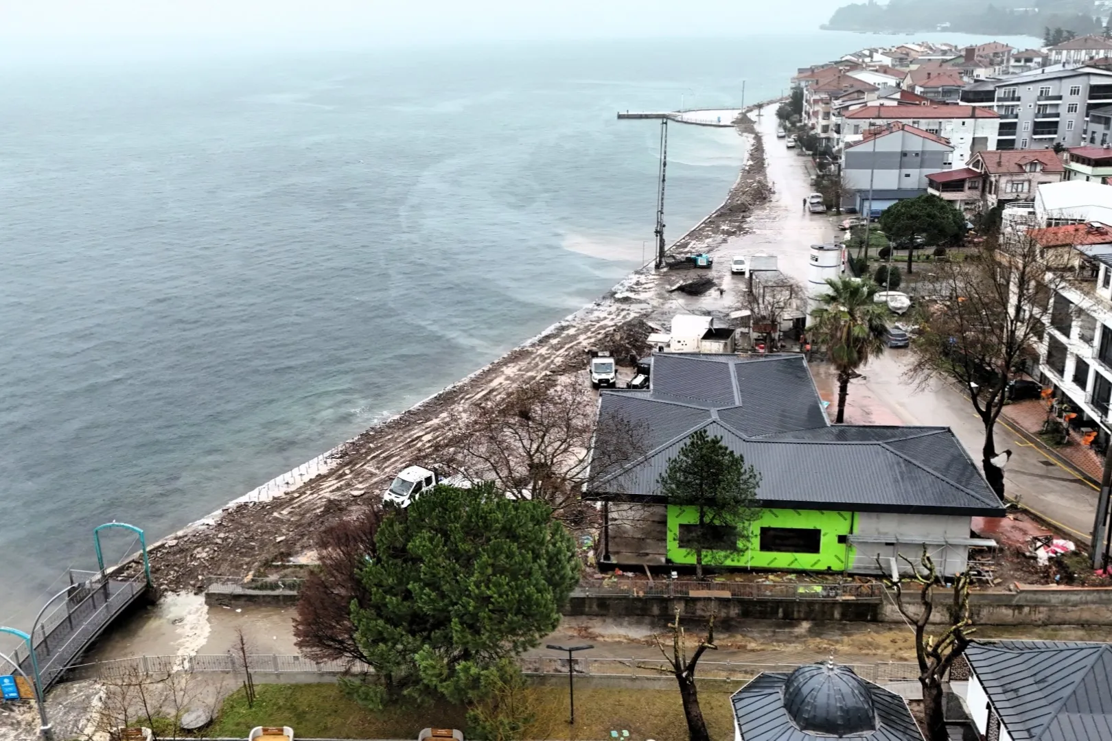 Kocaeli Büyükşehir Belediyesi, Gölcük Ulaşlı Sahili'ni fırtınalara karşı korumak için 550 metrelik dalga kırıcı set yapıyor.