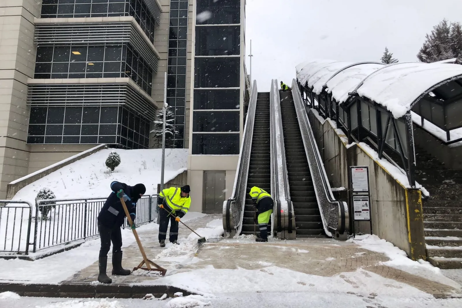 Ana arterlerin yanı sıra kent merkezindeki kaldırımlarda da kar küreme ve temizlik çalışması gerçekleştiriliyor. Bu kapsamda Umuttepe Kocaeli Üniversitesi Hastanesi’ndeki yol ve kaldırımlar ile poliklinik ve acil servis girişlerinde çalışmalar sürüyor. Ekipler; poliklinik, acil servis ve hastane ana girişleri, durak çevreleri ve yoğun yaya geçiş güzergâhlarında kar temizliği ve tuzlama yapıyor. Hastane bölgesinde yaya ve araç trafiğinin kesintisiz devam etmesi sağlanıyor.