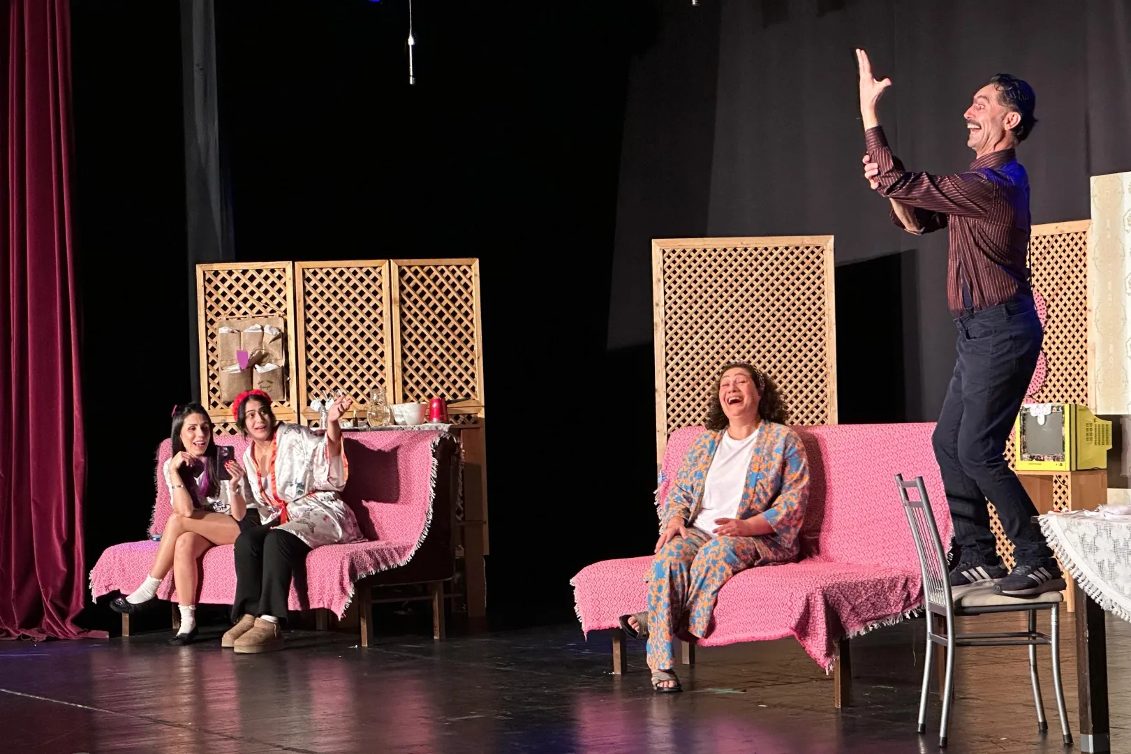 İki yıldır sahnelerde olan ve her gösteriminde büyük ilgi gören oyun, Maltepe Belediyesi Türkan Saylan Kültür Merkezi’nde izleyicilerle buluştu. Eray Yasin Işık’ın yazdığı oyun, enerjik sahne performanslarıyla dikkat çekti.