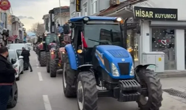 BURSA (İGFA) - Mudanya’da köylüler, belediye tarafından köylerin ortak kullanımındaki arazilerin satışa çıkarılmasına karşı mücadelesini sürdürüyor. İhale öncesinde taleplerini bir kez daha dile getirmek isteyen Mudanyalı köylüler, traktörleriyle ilçe merkezine gelerek eylem yaptı. Köylerden hareket ettikleri traktörlerle Yıldıztepe’deki belediye binasının önünde oluşturdukları tepki konvoyu ile ilçe merkezi içinden geçerek protestolarını sürdürdüler.