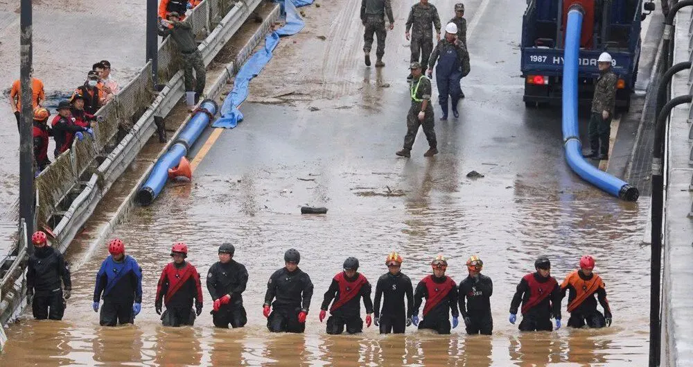Güney Kore’de günlerdir devam eden sağanak yağmur nedeniyle ölenlerin sayısı, su altında kalan bir alt geçitte ölü bulunan bir düzine kişinin de kaybedilmesiyle 39’a yükseldi. Devlet Başkanı Yoon Suk Yeol, yetkilileri afet müdahale kurallarına uymamakla suçladı.