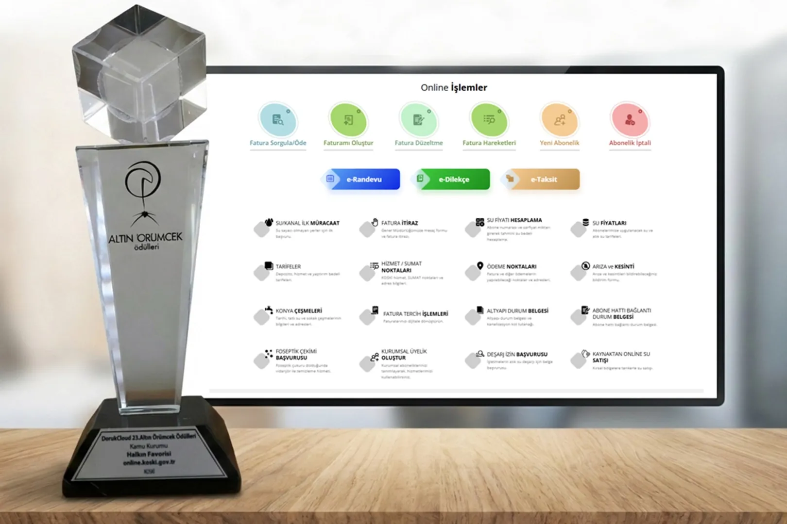 KONYA ( İGFA) - Konya Büyükşehir Belediyesi KOSKİ Genel Müdürlüğü’nün dijital hizmet platformu Online KOSKİ, 23. Altın Örümcek Ödülleri 2025 kapsamında Kamu Kurumu Kategorisi “Halkın Favorisi” Ödülü’nün sahibi oldu. Bu ödül, KOSKİ’nin dijital hizmetlerinin vatandaşlar tarafından yoğun ilgi gördüğünü ve yüksek memnuniyet düzeyine ulaştığını bir kez daha ortaya koydu.