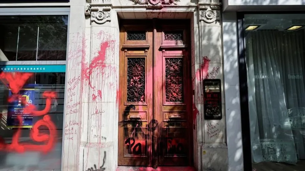 Şirketin Paris'teki ofisinin kapısına kırmızı sprey boyayla 'El Al Soykırım Hava Yolları' ve 'Filistin kazanacak' ifadeleri yazılırken, kapıya kanı sembolize eden çizimlerin de yapılması dikkati çekti.